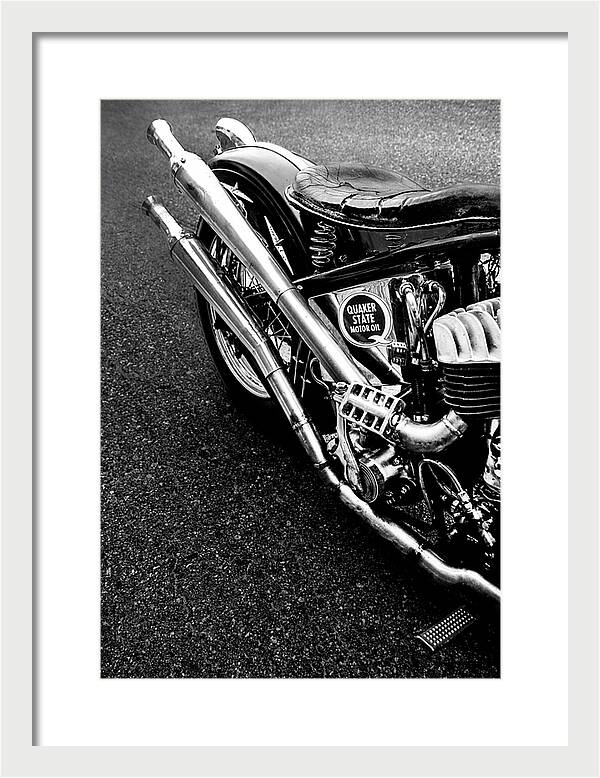 Svartvitt kvalitets fotografi. Avgasrör på en gammal Harley Davidson sidventilare. Retro.