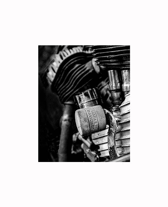Sidventils Harley med sliten pedal. Fotograferad under hoj träff.