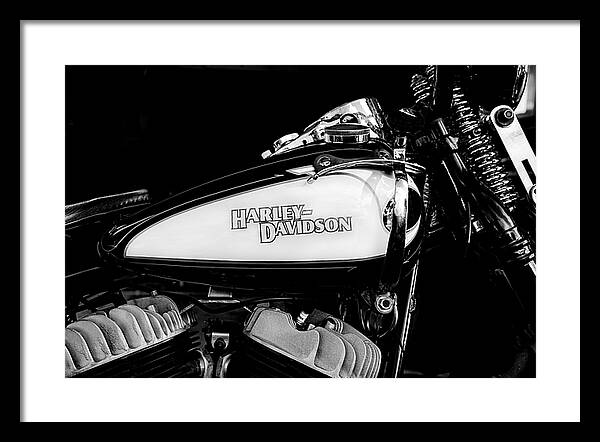 Stilig bensintank med Harley Davidson text placerad på en sidventil hoj.