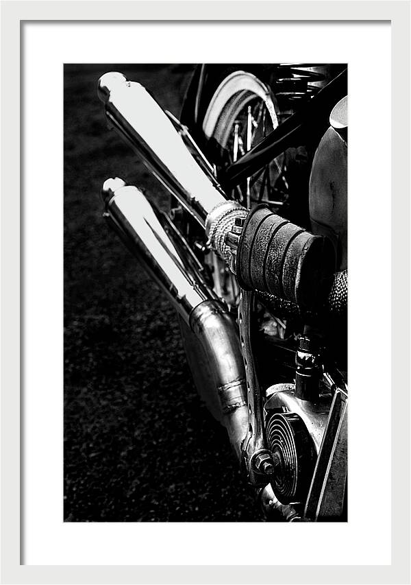 Denna kraftfulla svartvita närbild fångar själen i en klassisk Harley-Davidson-motor. Bilden visar sliten kick pedal, råa texturer och mekaniska detaljer som berättar historien om tid, kraft och tradition.