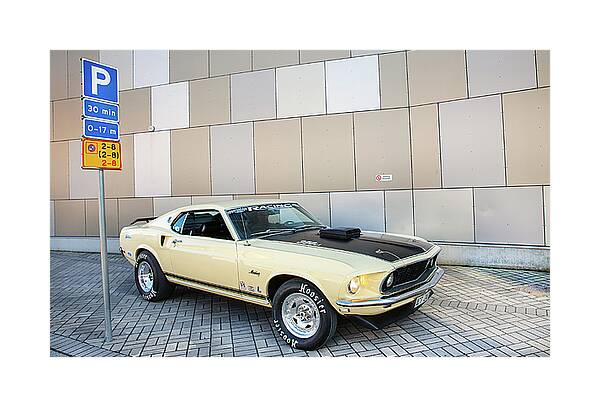 Mustang parkerad. Fotograferad för tidningen Wheels.