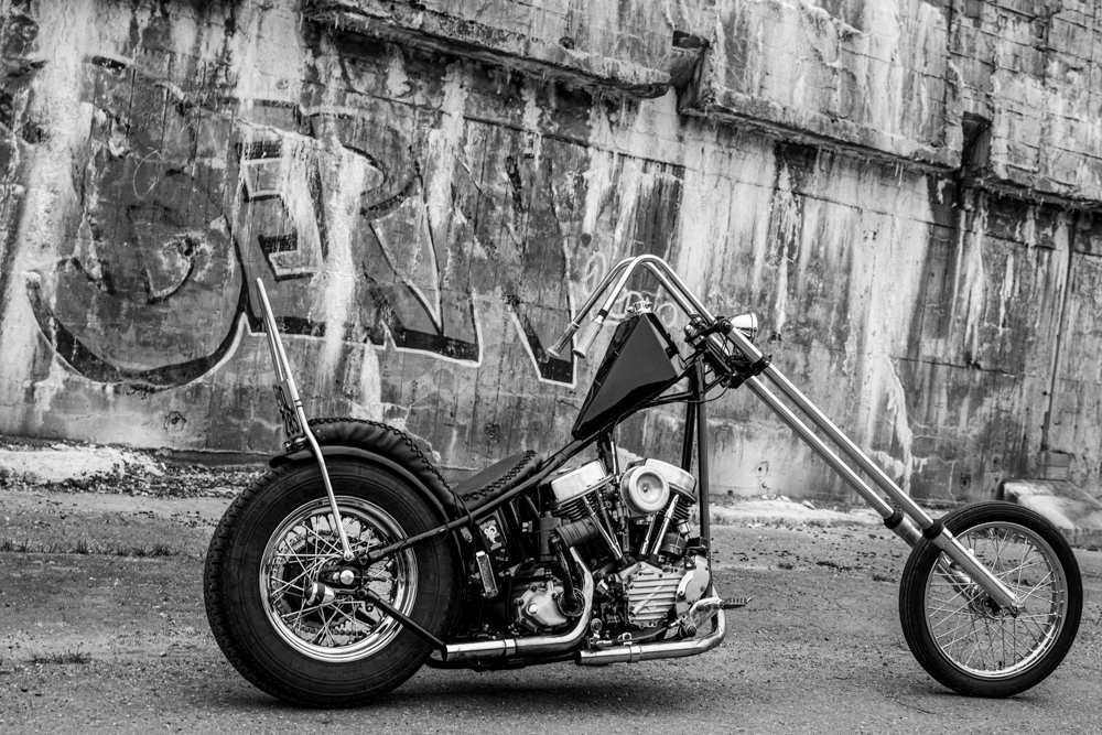 Svartvit fotokonst med äkta biker-känsla. Harley-Davidson chopper. Perfekta som väggkonst i hem, garage eller man cave.