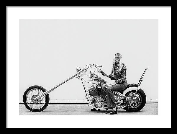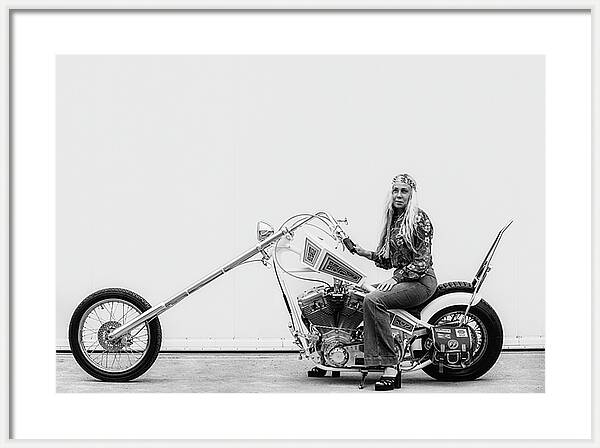 Klassisk Harley-Davidson Chopper motorcykel med kvinna.